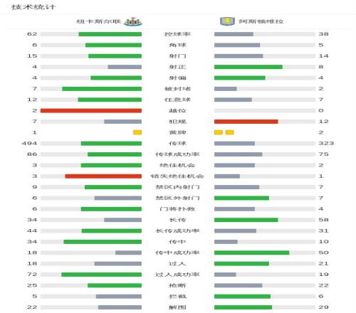第19分钟,布恩迪亚远射破门,维拉客场1-0领先纽卡