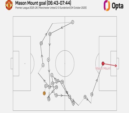 英超第7轮,曼联主场对阵桑德兰,上半场芒特破门为曼联首开记录,这粒进球经历了连续18次传球,为曼联近两年来英超进球前最长传球。此役主场对阵桑德兰,芒特在比赛第8分钟接姆伯莫助
